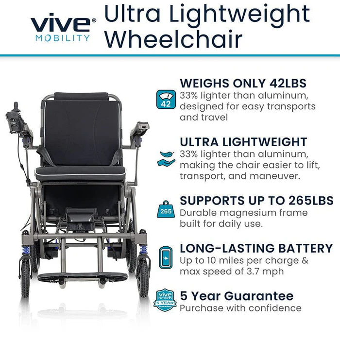 Weighing just 42 lbs, this power wheelchair is made from premium magnesium alloy for strength without the bulk. It’s easy to lift, fold, and carry—perfect for everyday mobility or travel.