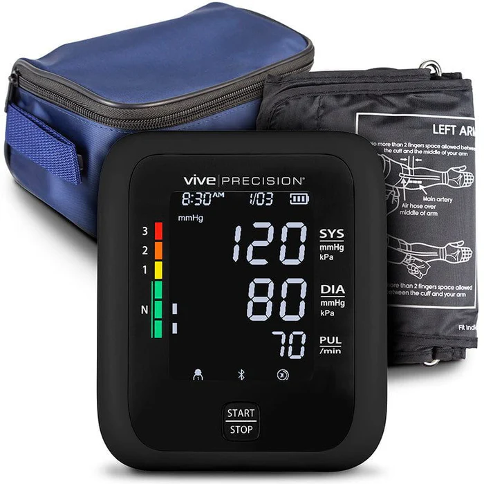 Stores and recalls 99 complete blood pressure readings with unlimited historical data on the Vive Precision app