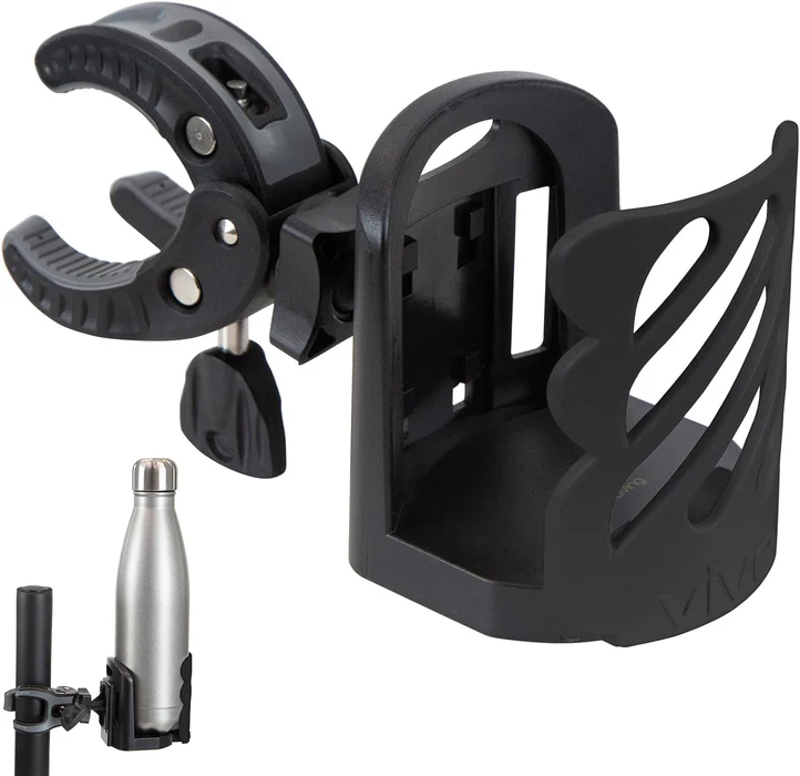 Its strong clamp mechanism and swivel base attaches to wheelchairs, walkers, scooters, rollators, canes, and strollers