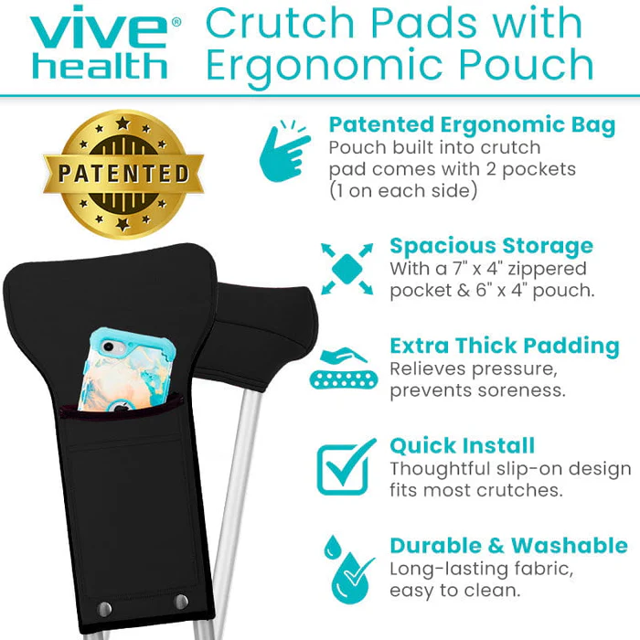 Designed with premium-grade foam, the Vive Crutch Pads evenly distribute body weight to eliminate painful rubbing and chafing. The smooth, breathable surface wicks away moisture and stays comfortable even during all-day wear.