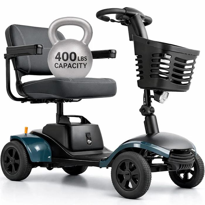 This heavy-duty mobility scooter supports users weighing up to 400 lbs, offering dependable performance for seniors, adults, and individuals requiring extra stability. Its reinforced steel and durable plastic frame deliver long-lasting reliability for everyday transportation and errands.