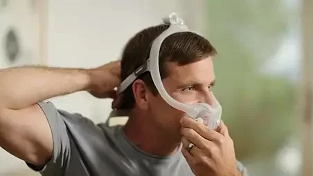 DreamWear features soft, single strap headgear that rests at the back of the head, stabilizing the mask without requiring over-tightening or excessive contact. The tubing elbow is located on the top of the head where it can swivel freely to help reduce drag and clutter on the bedsheets.
